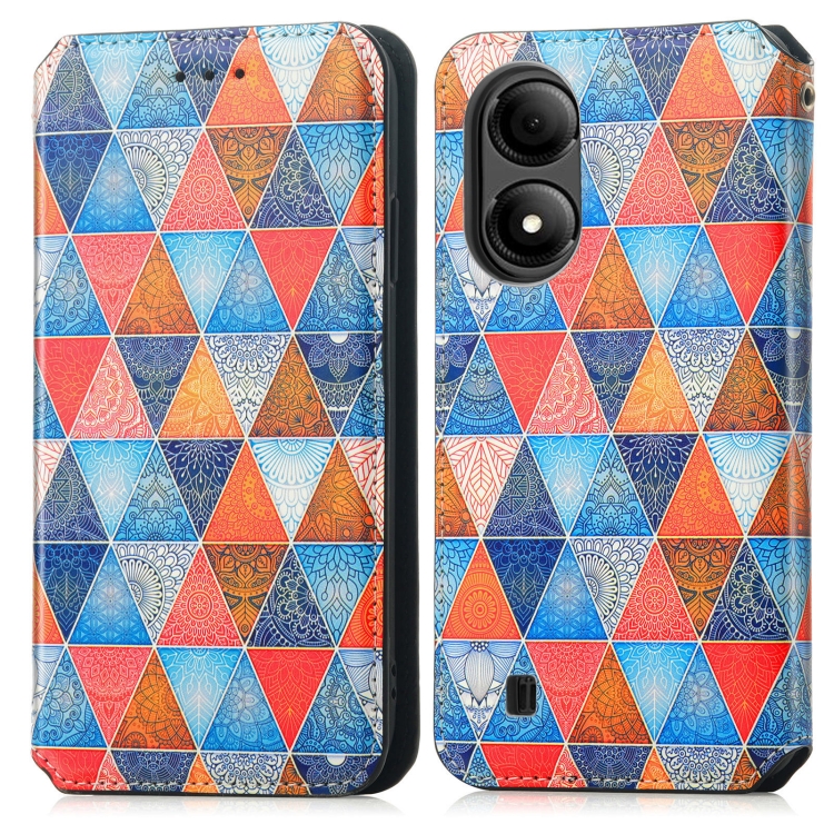 Funda de Cuero Magnética Caseneo para ZTE Blade A33S (Rhombus Mandala)