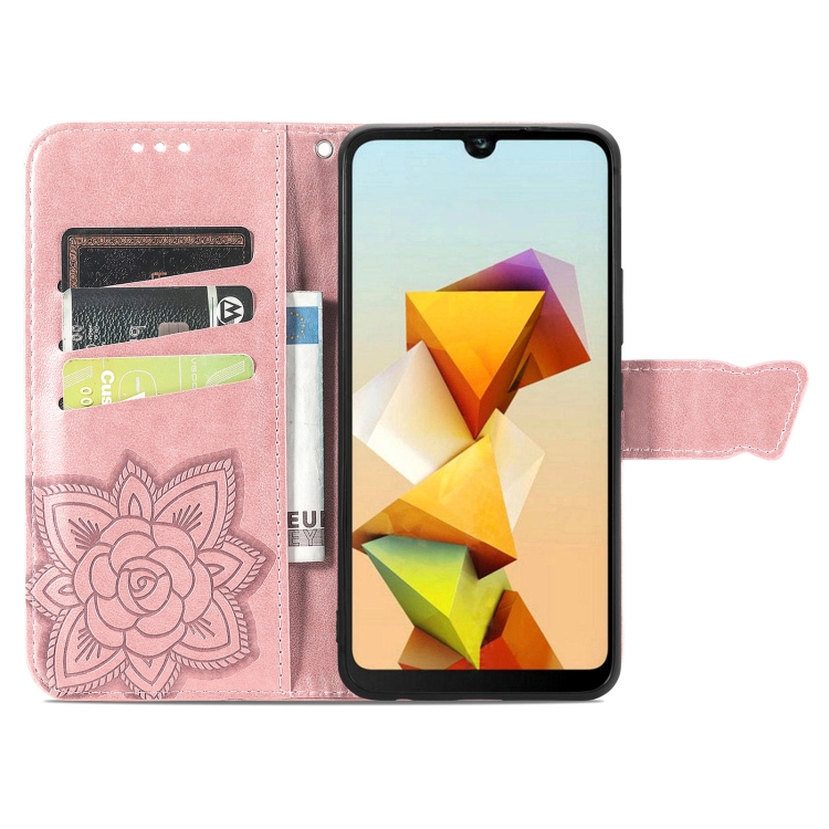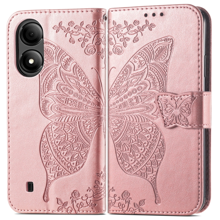 Funda para ZTE Blade A33S de Cuero con Relieve Flor de Amor y Mariposa (Oro Rosa)