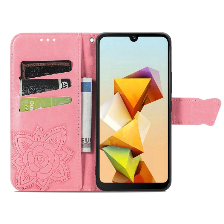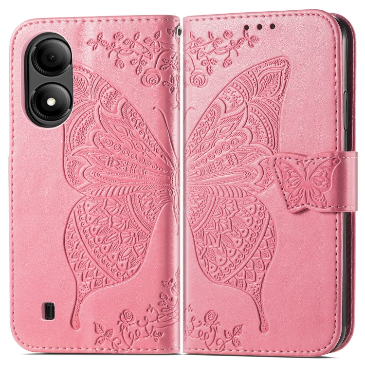 Funda para ZTE Blade A33S Cuero con Relieve Flor y Mariposa (Rosa)