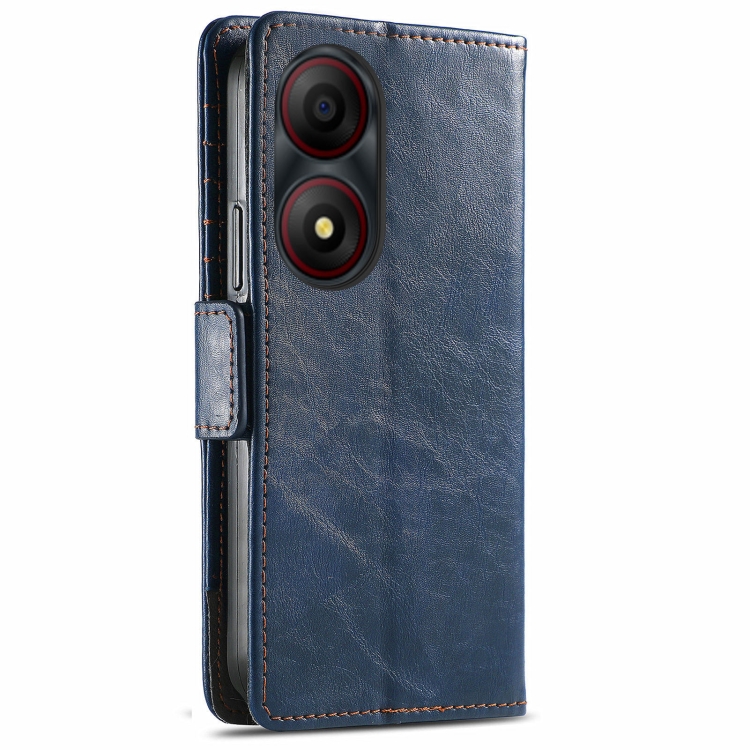 Funda de Cuero Caseneo para ZTE Blade A34 con Hebilla Magnética Dual (Azul)