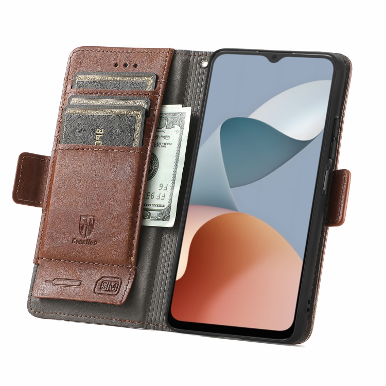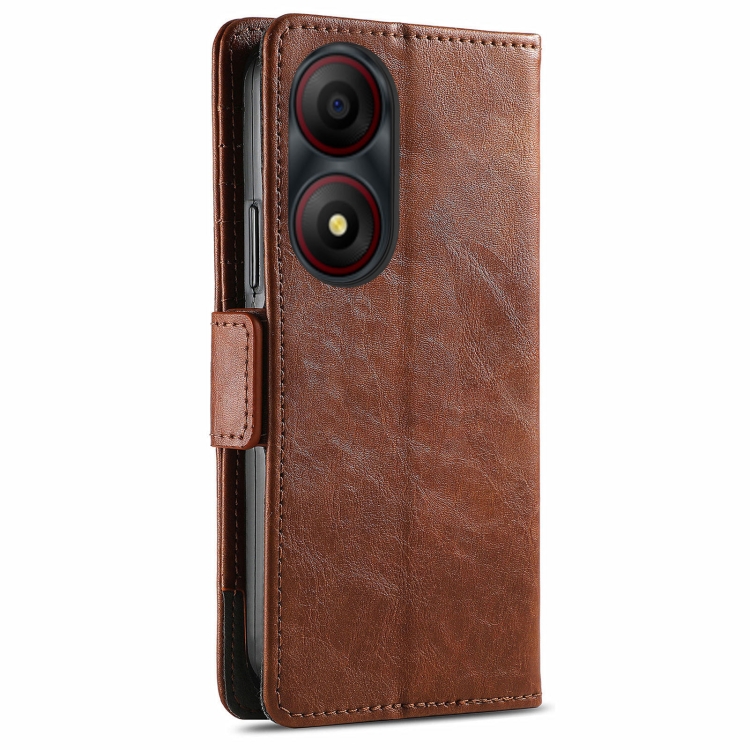 Funda de Cuero Caseneo para ZTE Blade A34 con Hebilla Magnética Dual (Marrón)
