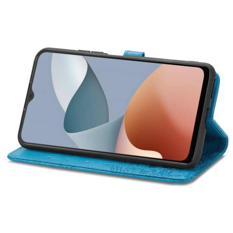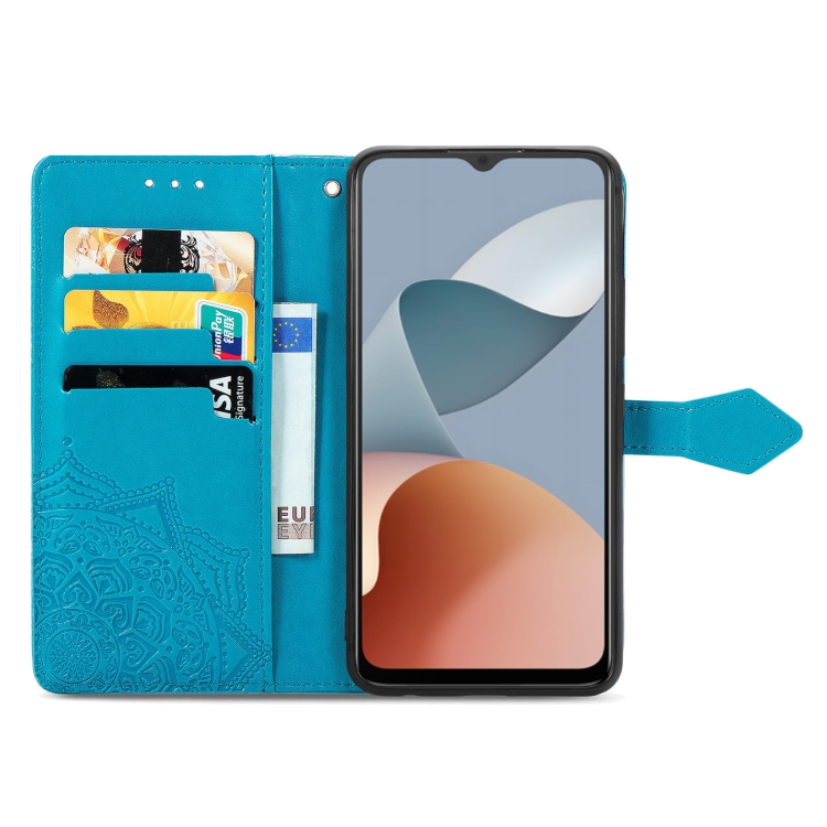 Funda para ZTE Blade A34 Cuero con Estampado de Flores Mandala (Azul)