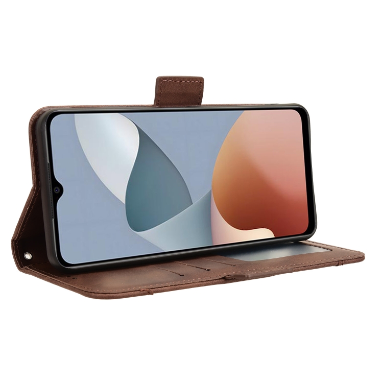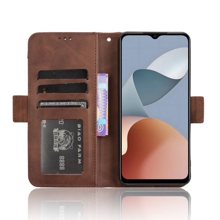 Funda de Cuero para ZTE Blade A34 Skin Feel con Textura Becerro y Ranuras para Tarjetas (Marrón)