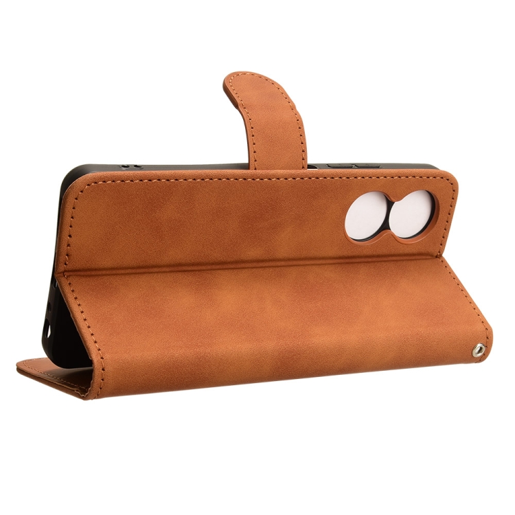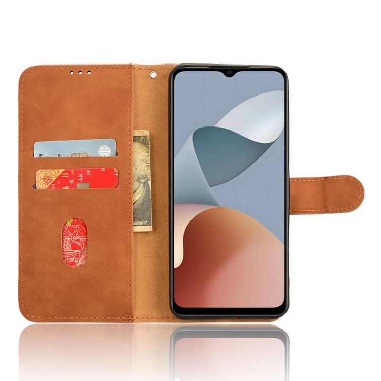 Funda de Cuero con Tapa Magnética para ZTE Blade A34 Skin Feel (Marrón)