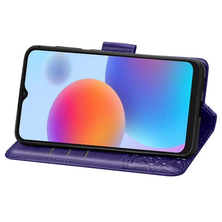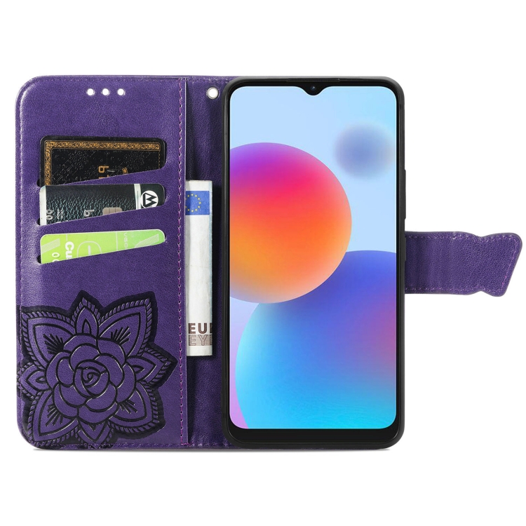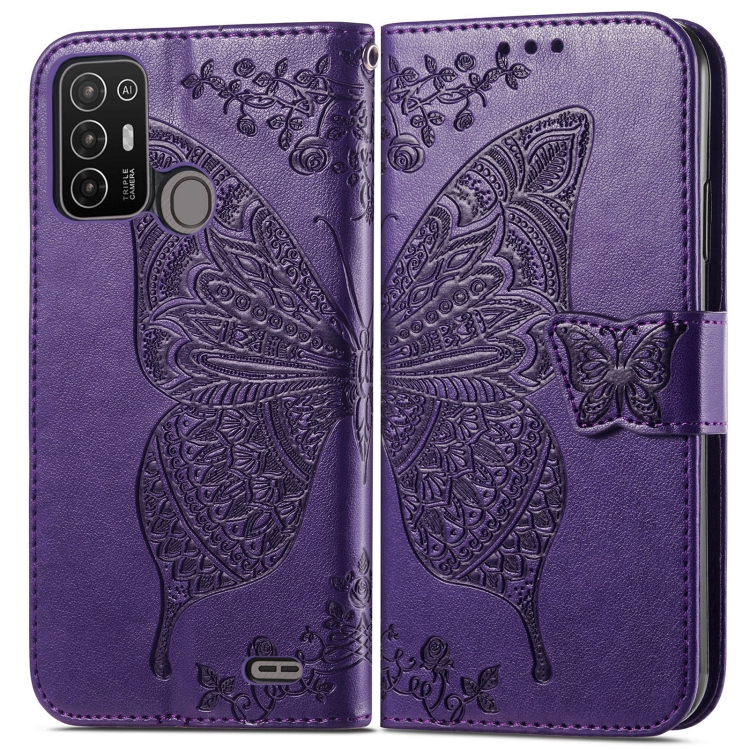 Estuche para ZTE Blade A52 Butterfly Love Flower de Cuero En Relieve (Púrpura)