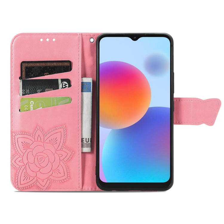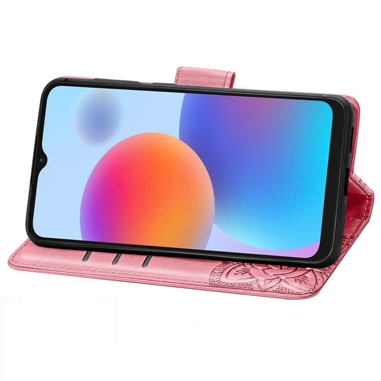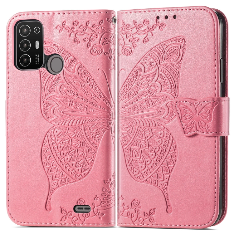 Estuche para ZTE Blade A52 Butterfly Love Flower de Cuero en Relieve (Rosa)