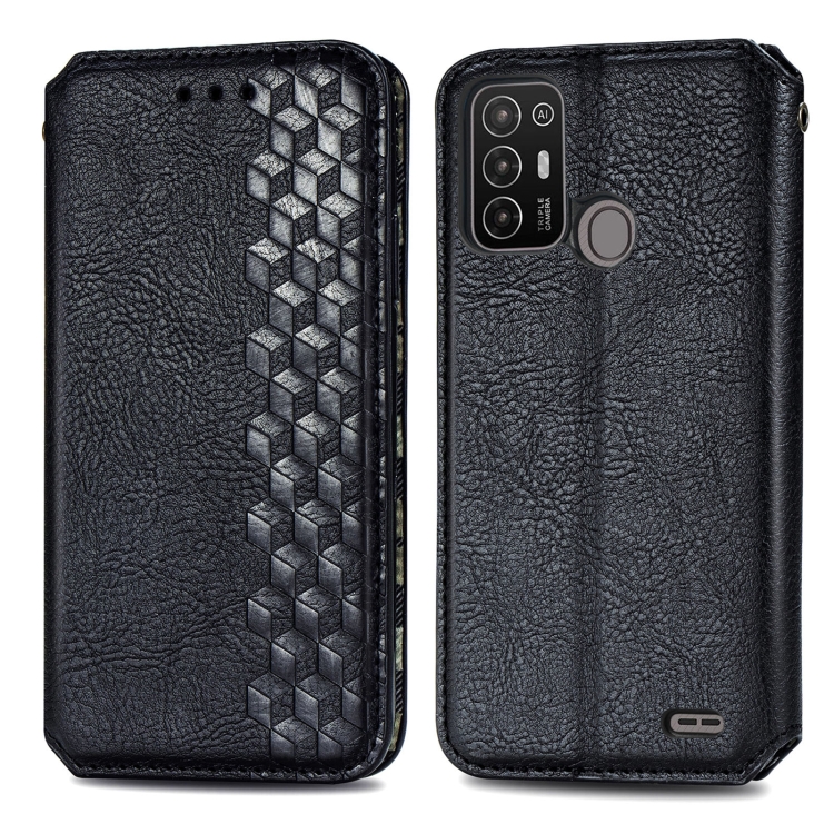 Funda de Cuero Magnética para ZTE Blade A52 con Rejilla Cúbica (Negro)