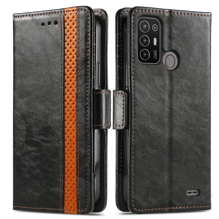 Funda para ZTE Blade A52 Caseneo Splicing con Doble Broche Magnético de Cuero (Negro)