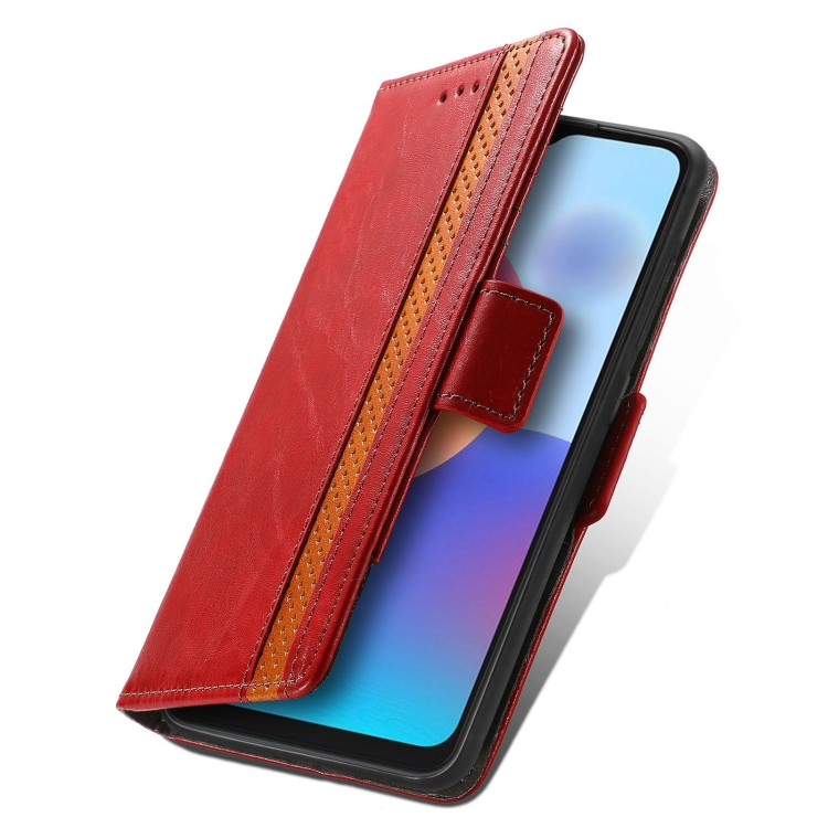 Funda de Cuero Caseneo Splicing Dual Magnetic con Hebilla para ZTE Blade A52 (Rojo)