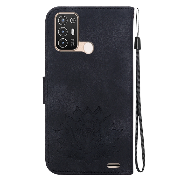 Funda de Cuero para ZTE Blade A52 con Relieve de Loto (Negro)