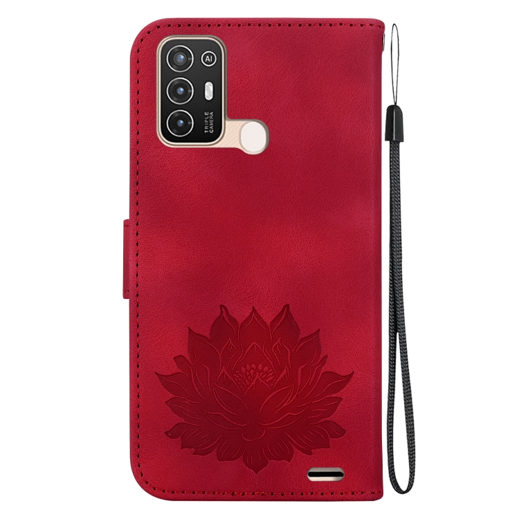 Funda de Cuero para ZTE Blade A52 con Relieve de Loto (Rojo)