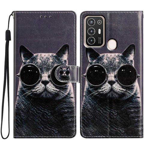 Funda de Cuero para ZTE Blade A52 con Dibujo Gato de Gafas de Sol