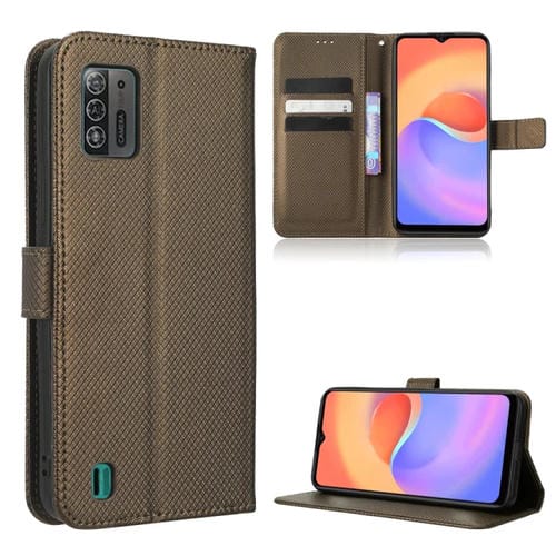 Funda de Cuero para ZTE Blade A52 Lite con Textura de Diamante (Marrón)