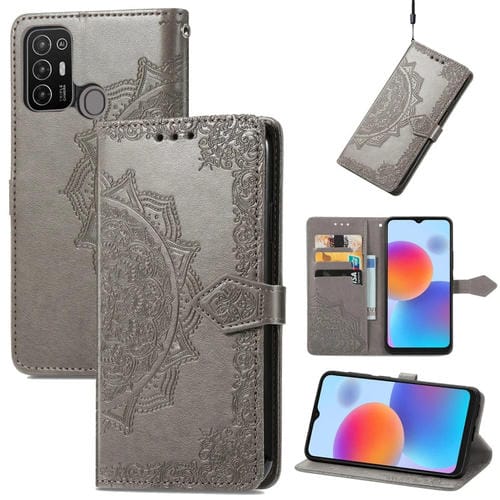 Funda de Cuero para ZTE Blade A52 Mandala Flower con Relieve (Gris)