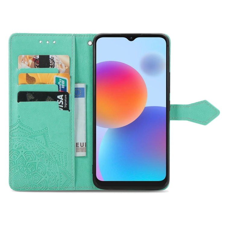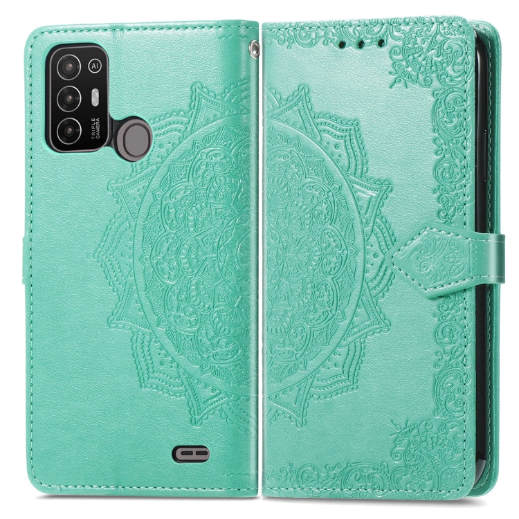 Funda para ZTE Blade A52 Mandala Flower Cuero en Relieve (Verde)