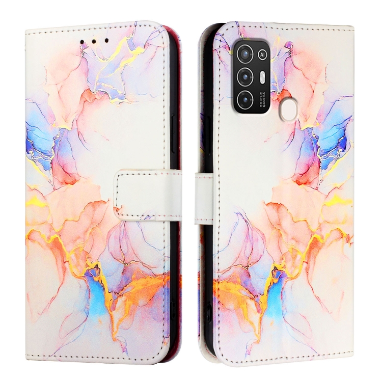 Funda de Cuero con Tapa para ZTE Blade A52 Pt003 con Patrón Mármol (Blanco)