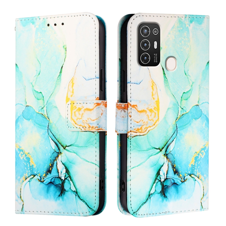 Funda de Cuero para ZTE Blade A52 Pt003 con Tapa y Patrón de Mármol (Verde)