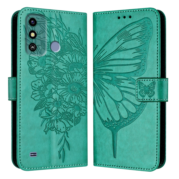 Funda de Cuero para ZTE Blade A53 con Mariposa en Relieve (Verde)