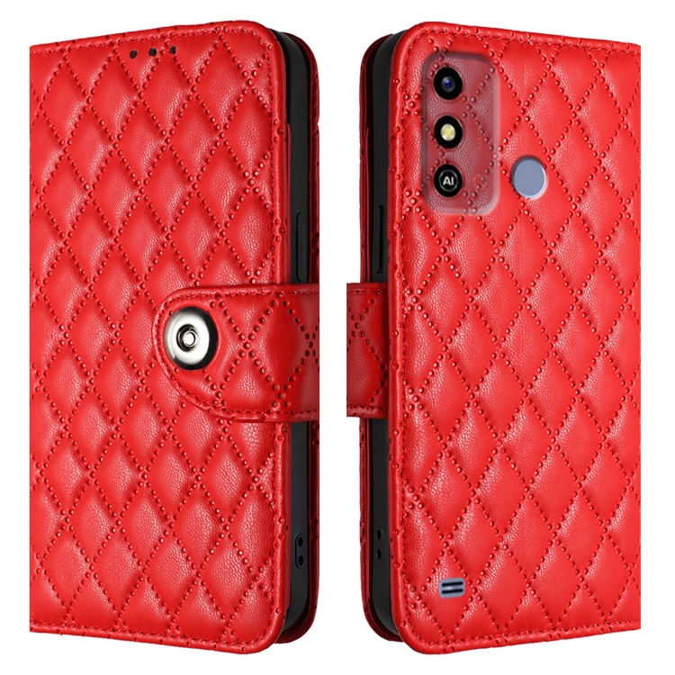Funda de Cuero para ZTE Blade A53 con Tapa Textura Rombal y Cordón (Rojo)