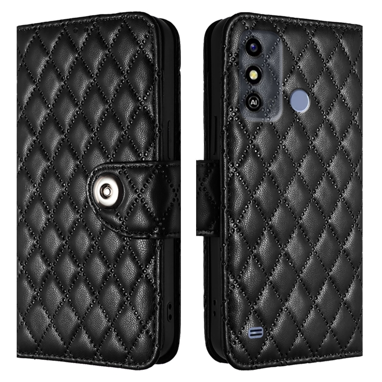 Funda de Cuero para ZTE Blade A53 con Tapa Textura Rómbica y Cordón (Negro)