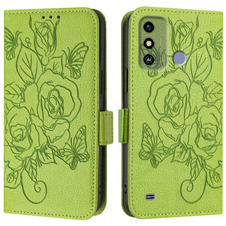 Funda de Cuero Antirrobo RFID para ZTE Blade A53 con Relieve (Verde)