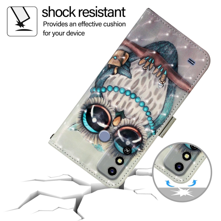 Funda para ZTE Blade A53 de Cuero con Tapa Horizontal y Pintura 3D Búho (Gris)