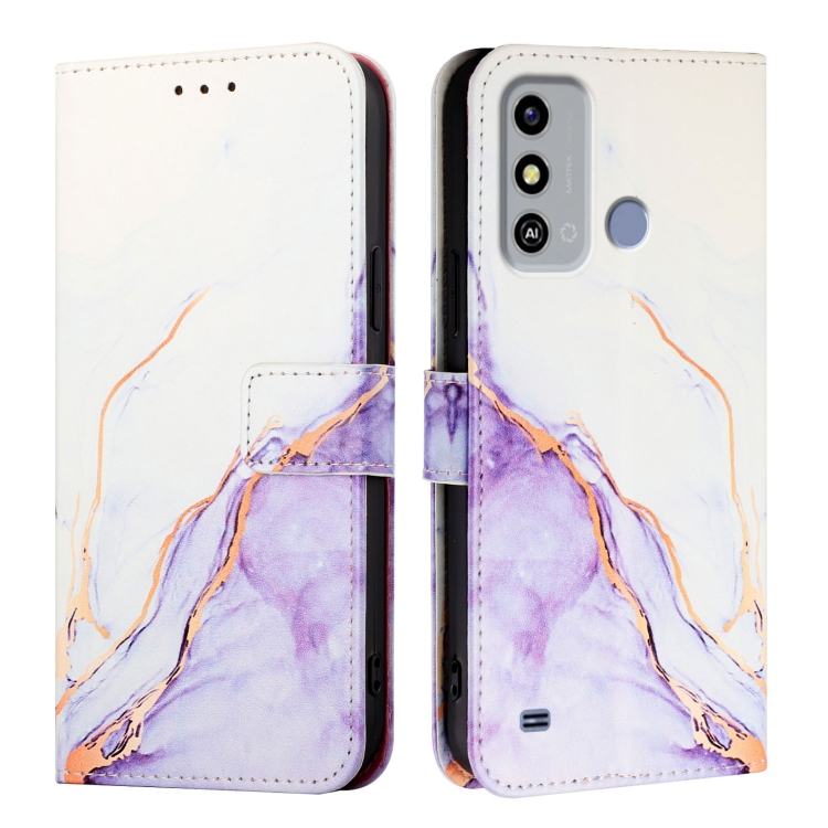 Funda de Cuero para ZTE Blade A53 Pt003 con Tapa y Patrón de Mármol (Blanco y Morado)