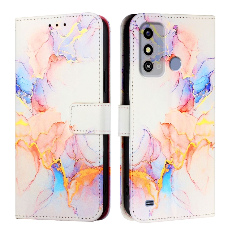 Funda de Cuero con Tapa para ZTE Blade A53 Pt003 con Patrón Mármol (Blanco)