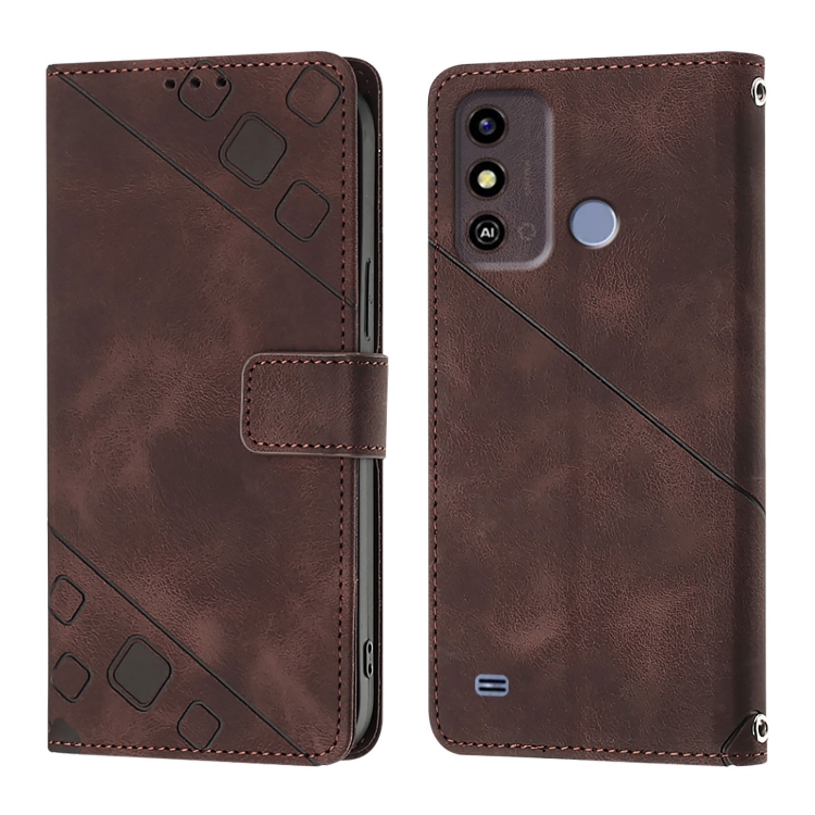 Funda de Cuero para ZTE Blade A53 Skin Feel En Relieve (Marrón)