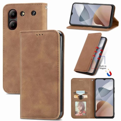 Funda de Cuero Magnética para ZTE Blade A54 con Sensación de Piel Retro (Marrón)
