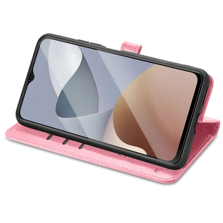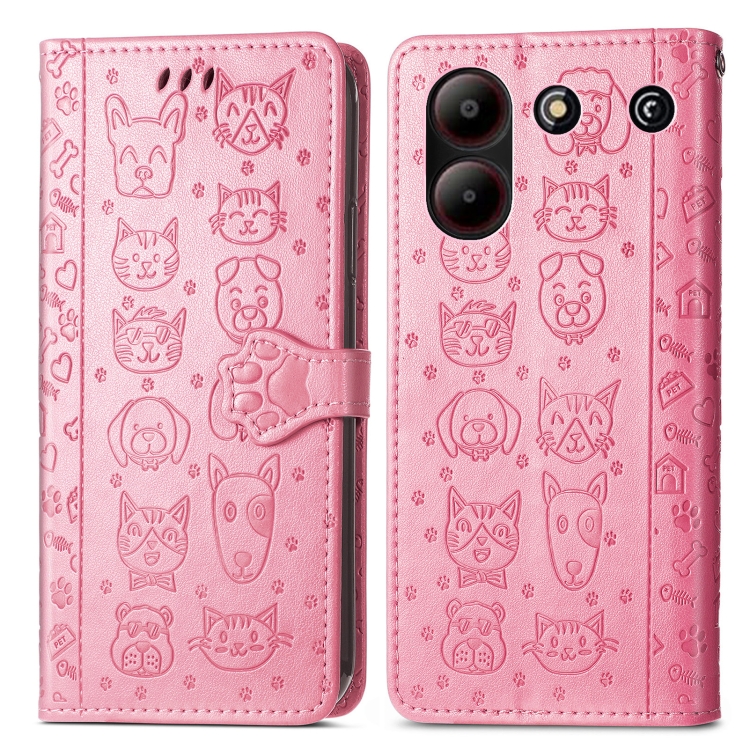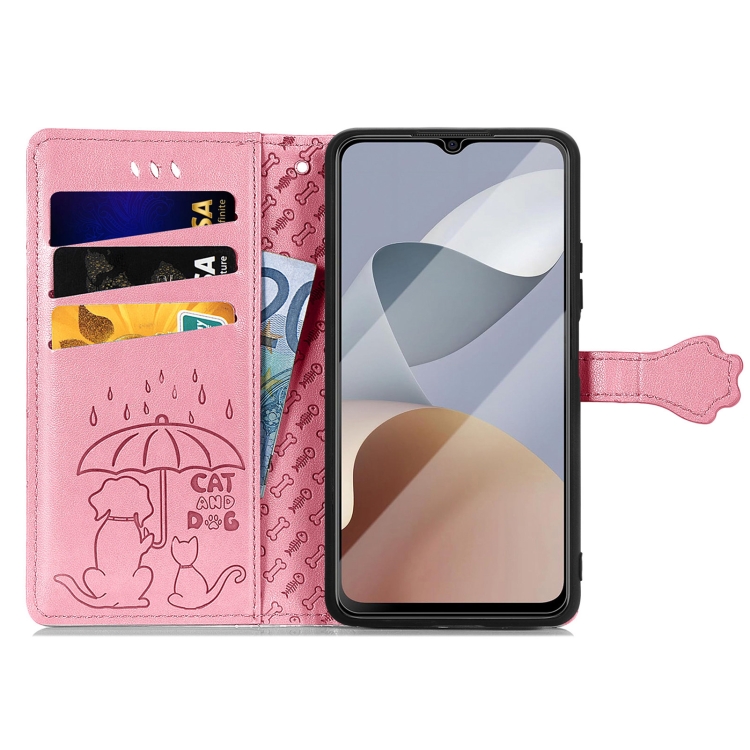 Funda para ZTE Blade A54 de Cuero con Relieve de Gato y Perro (Rosa)