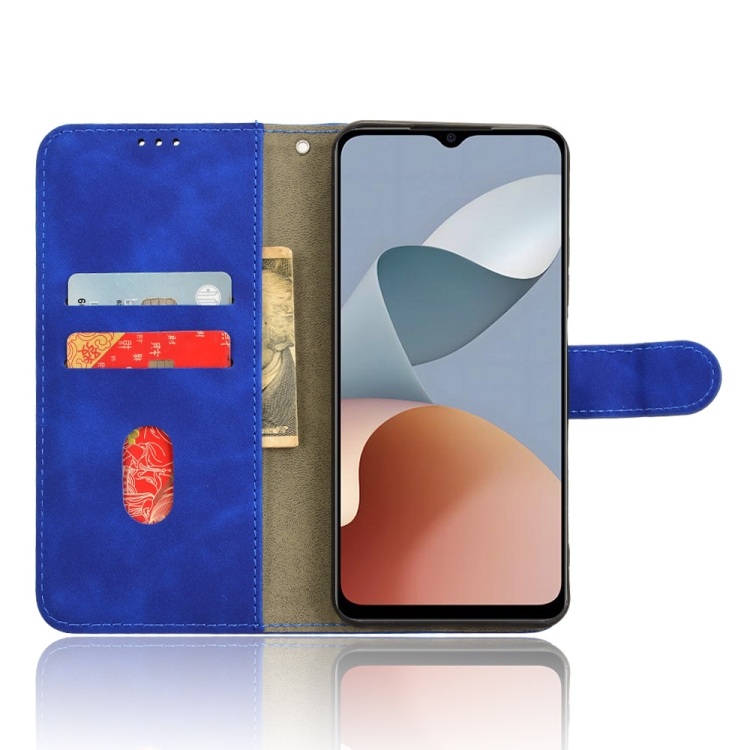 Funda de Cuero para ZTE Blade A54 Skin Feel con Tapa Magnética (Azul)