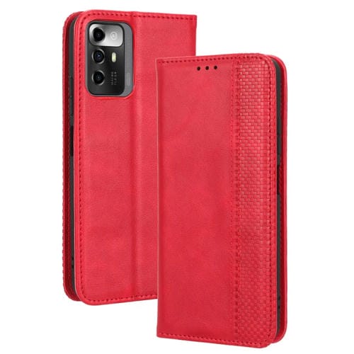 Funda de Cuero con Hebilla Magnética para ZTE Blade A72 5G Textura Retro (Rojo)
