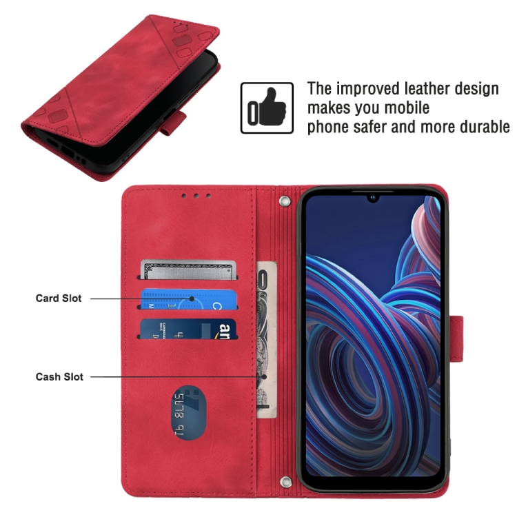 Estuche para teléfono ZTE Blade A72 de cuero en relieve con tacto de piel (Rojo)