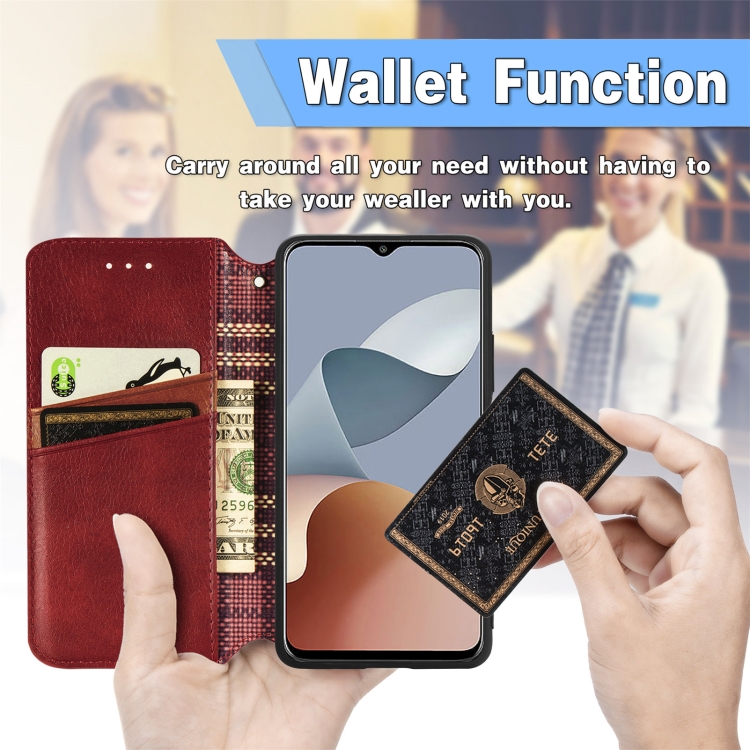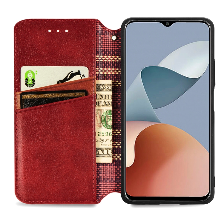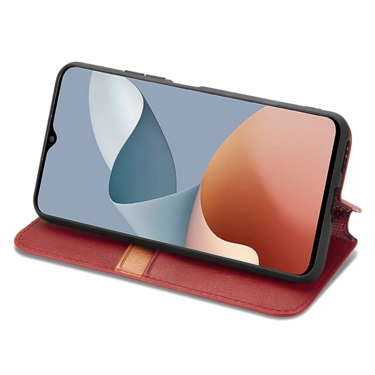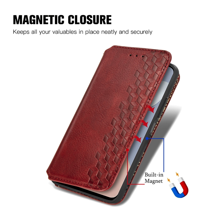 Funda de Cuero Magnético para ZTE Blade A73 4G Cubic Grid (Rojo)