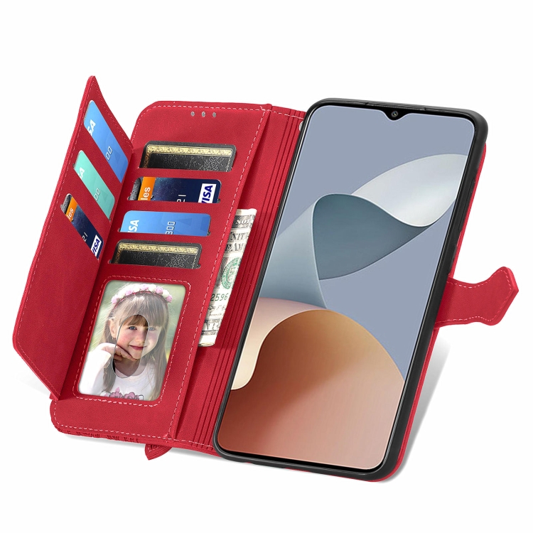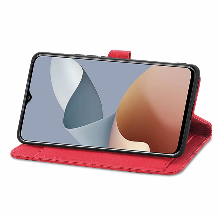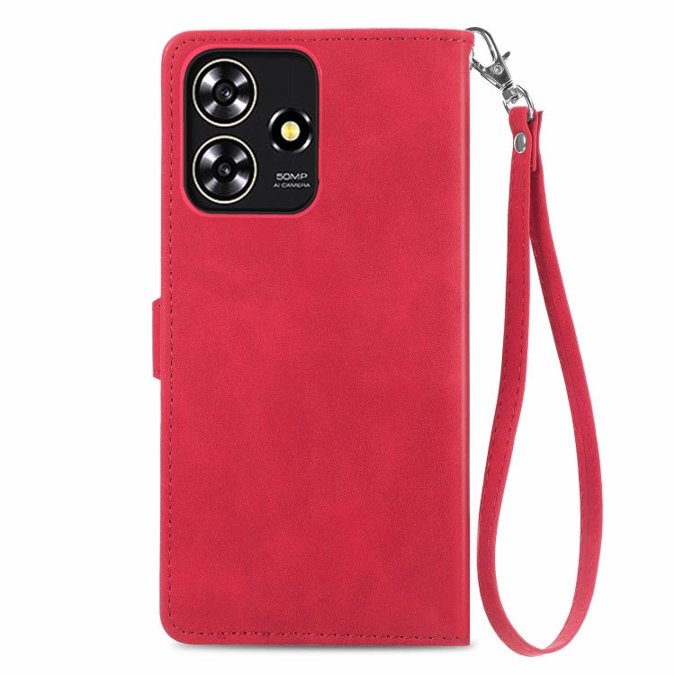 Funda de Cuero para ZTE Blade A73 4G con Cremallera y Flor en Relieve (Rojo)