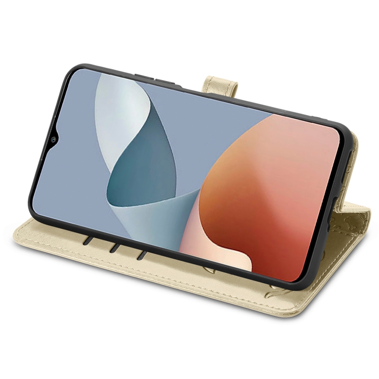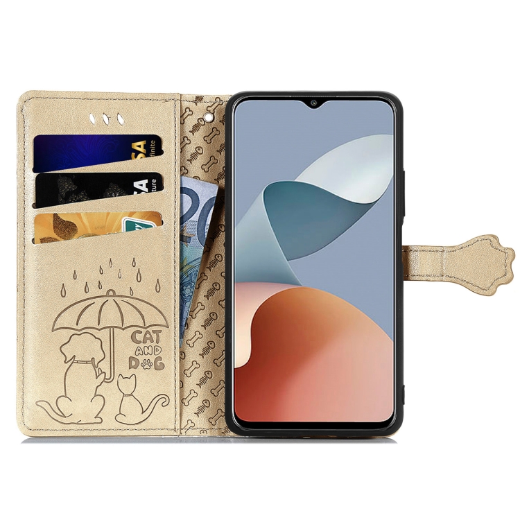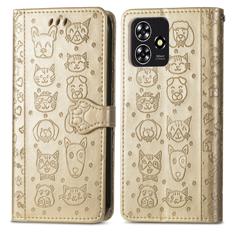 Funda de Cuero con Relieve para ZTE Blade A73 4G para Perros y Gatos (Dorado)