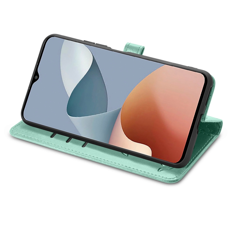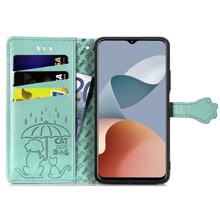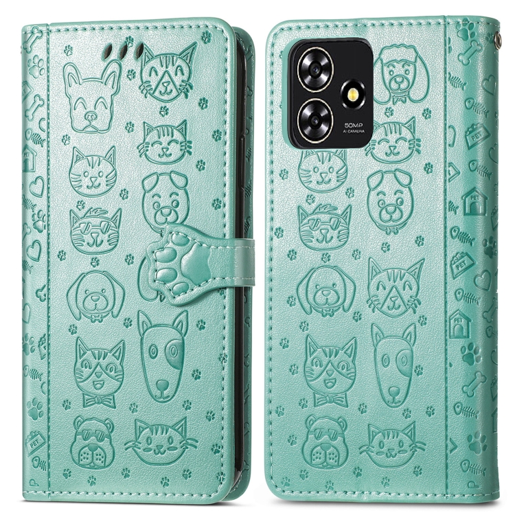 Funda de Cuero para ZTE Blade A73 4G con Relieve Perros y Gatos (Verde)