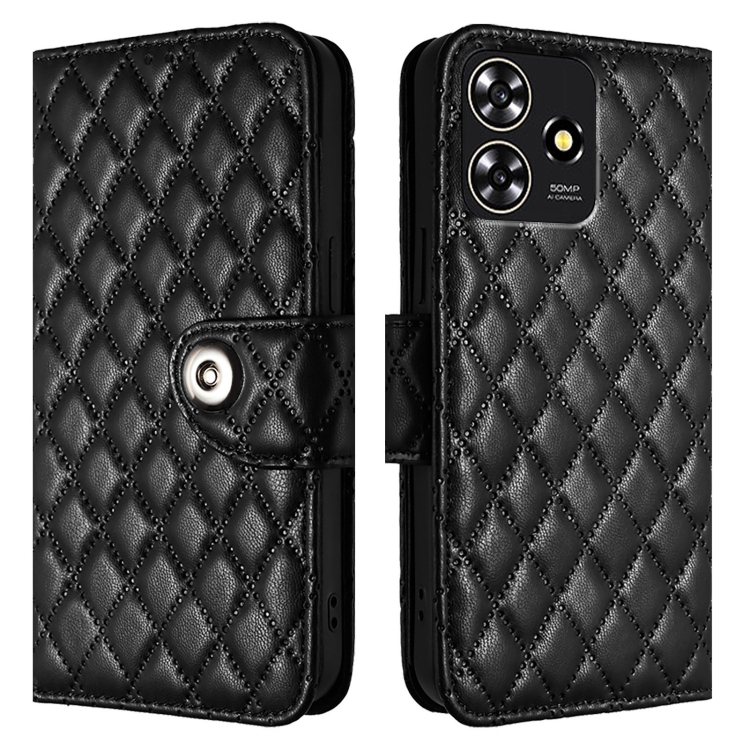 Funda de Cuero para ZTE Blade A73 4G con Tapa Textura Romboidal y Cordón (Negro)