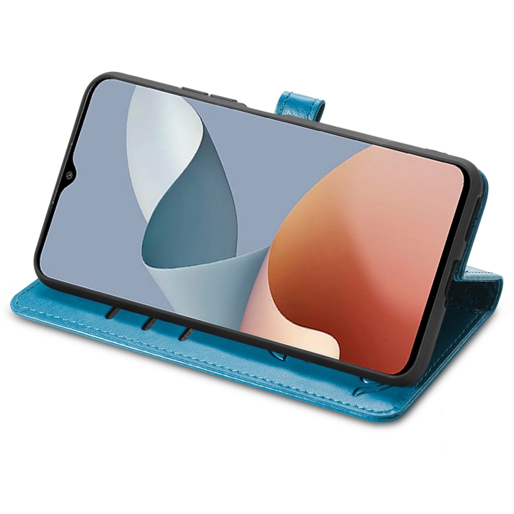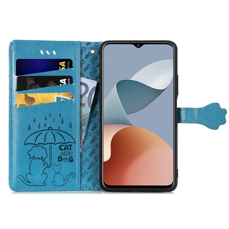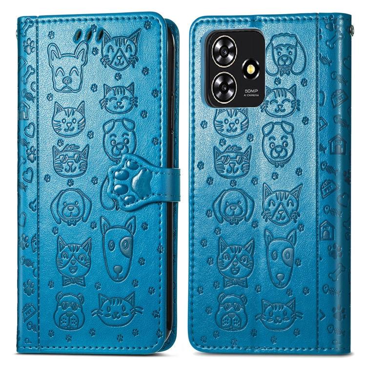 Funda para ZTE Blade A73 4G de Cuero con Relieve de Perro y Gato (Azul)