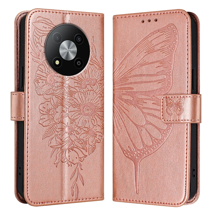 Funda de Cuero para ZTE Blade A73 5G con Mariposa en Relieve (Oro Rosa)