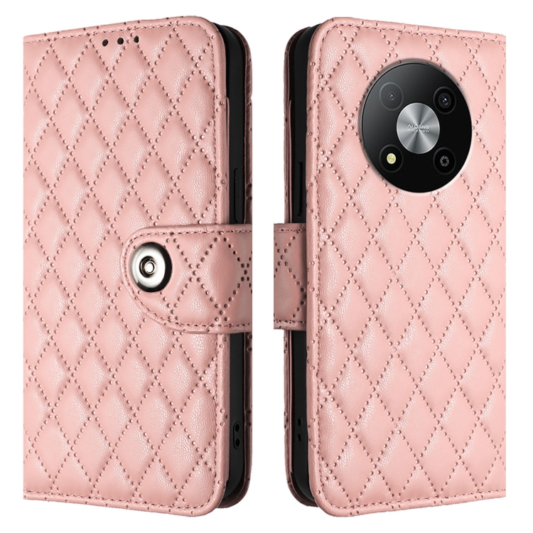 Funda para ZTE Blade A73 5G de Cuero con Tapa, Textura Romboidal y Cordón (Rosa Coral)