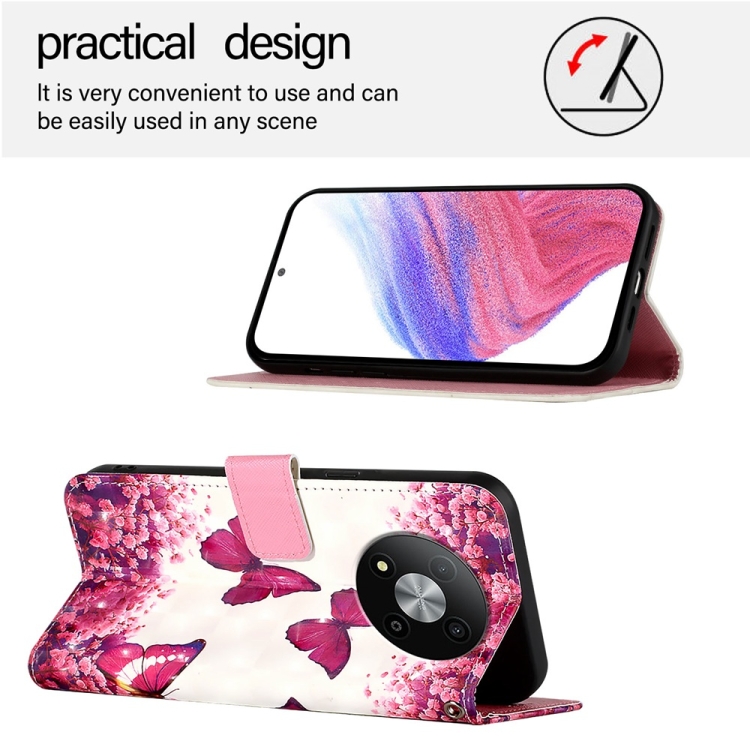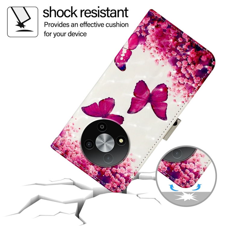 Funda para ZTE Blade A73 5G de Cuero con Tapa Horizontal y Pintura 3D (Mariposa Rosa)