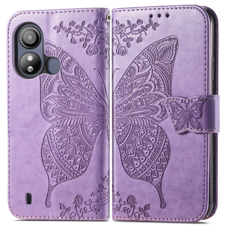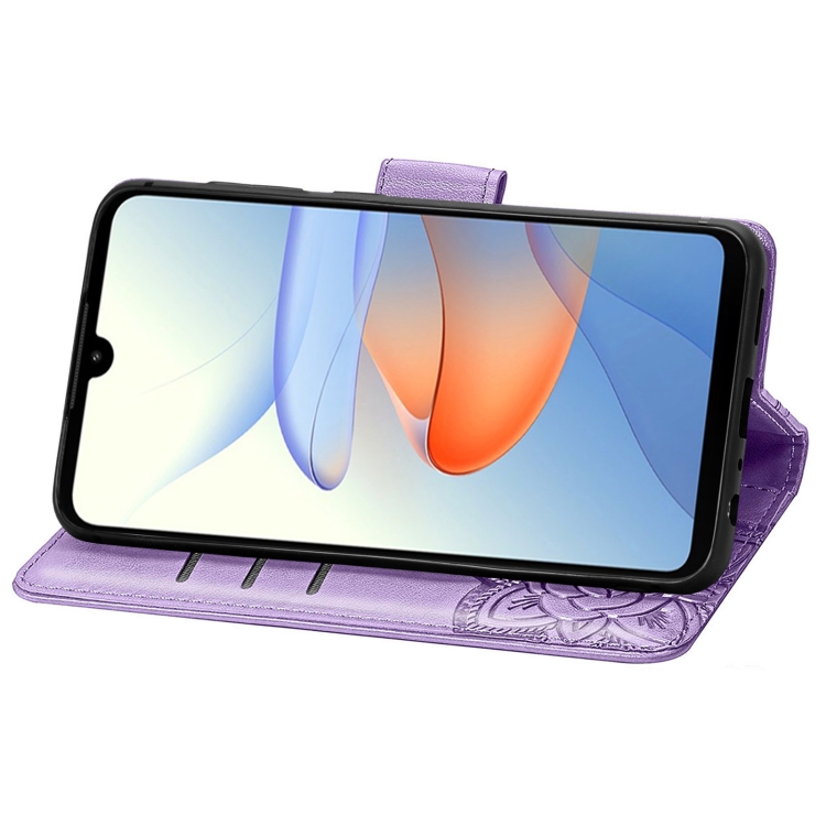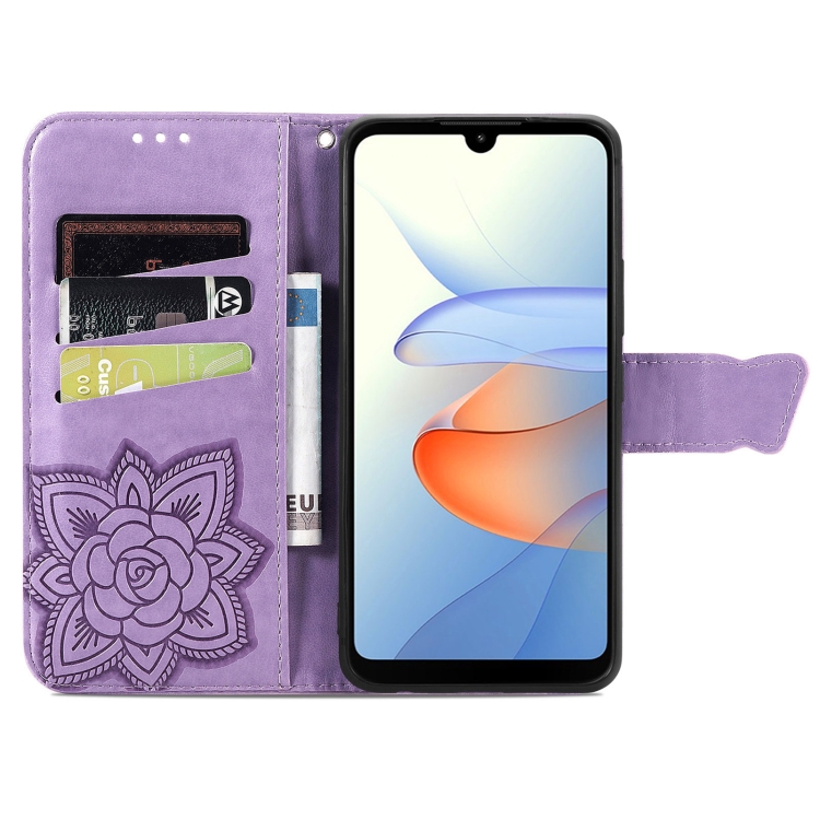 Funda para ZTE Blade L220 Cuero con Relieve Flor de Amor y Mariposa (Púrpura Claro)