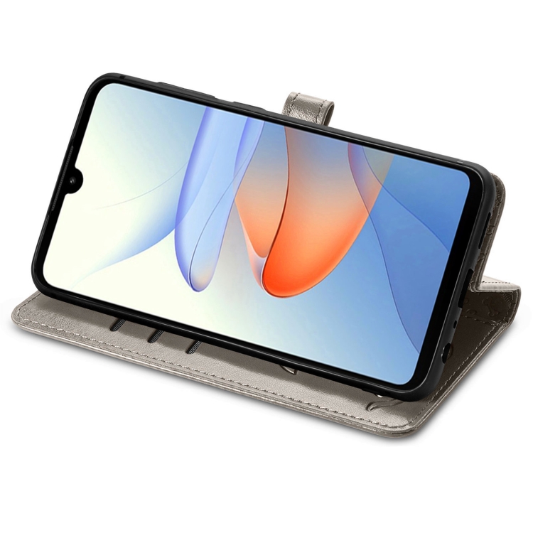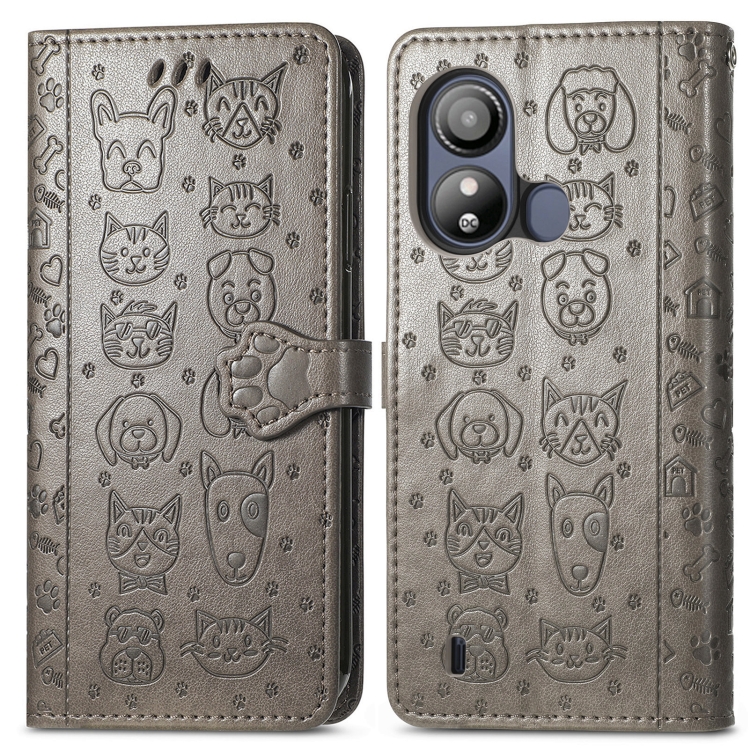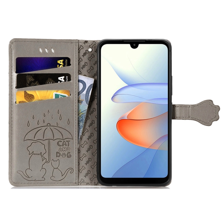 Funda para ZTE Blade L220 de Cuero con Relieve de Gato y Perro (Gris)