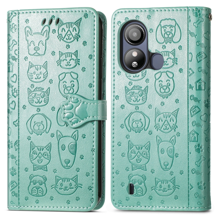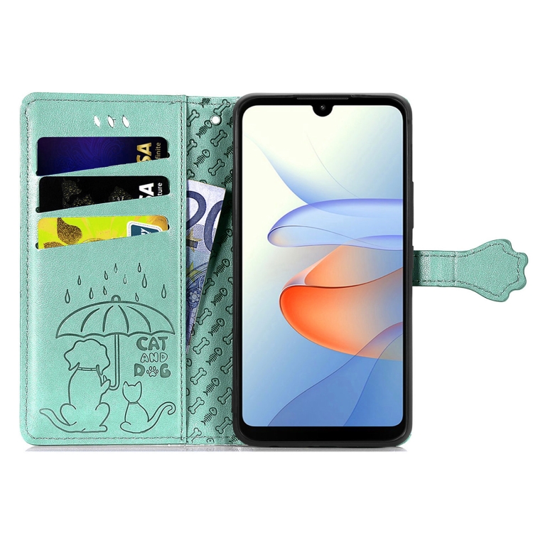 Funda para ZTE Blade L220 de Cuero con Relieve de Gato y Perro (Verde)