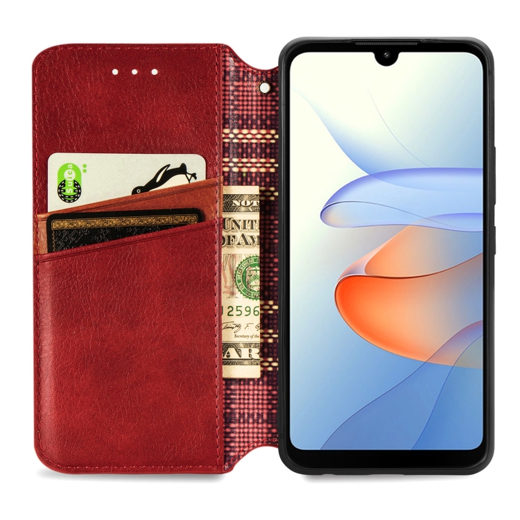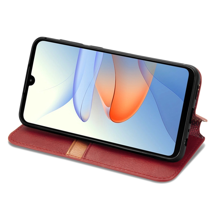 Funda para ZTE Blade L220 de Cuero Magnético Prensado con Rejilla Cúbica (Rojo)