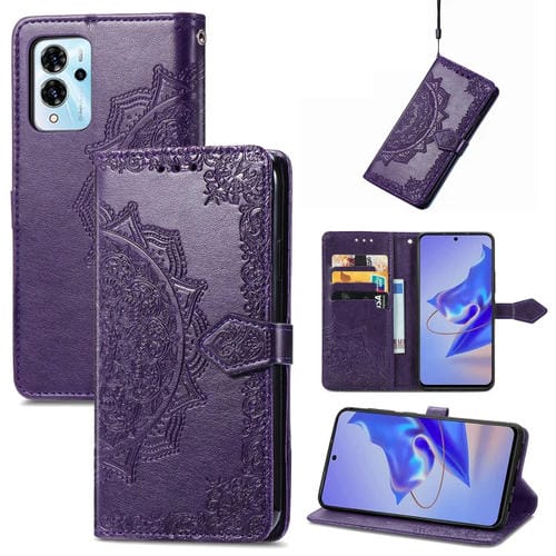 Estuche para teléfono ZTE Blade V40 Pro Mandala Flower Cuero en Relieve (Púrpura)