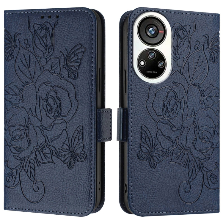 Funda para ZTE Blade V40S de Cuero Antirrobo RFID con Relieve Rosa (Azul Oscuro)