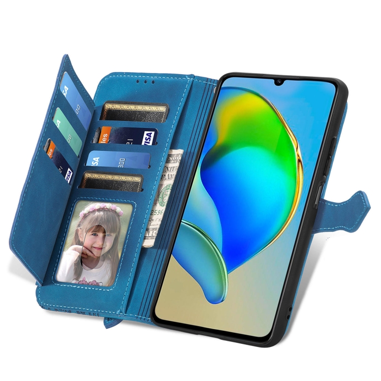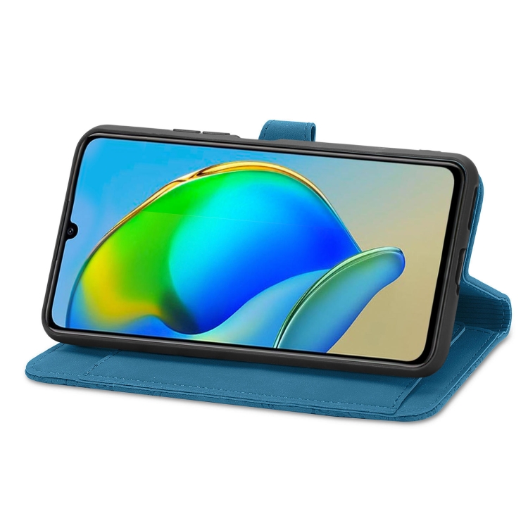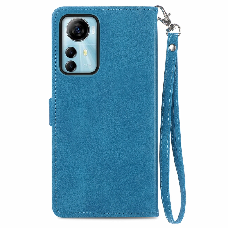 Funda de Cuero para ZTE Blade V41 con Cremallera y Flor en Relieve Inteligente (Azul)